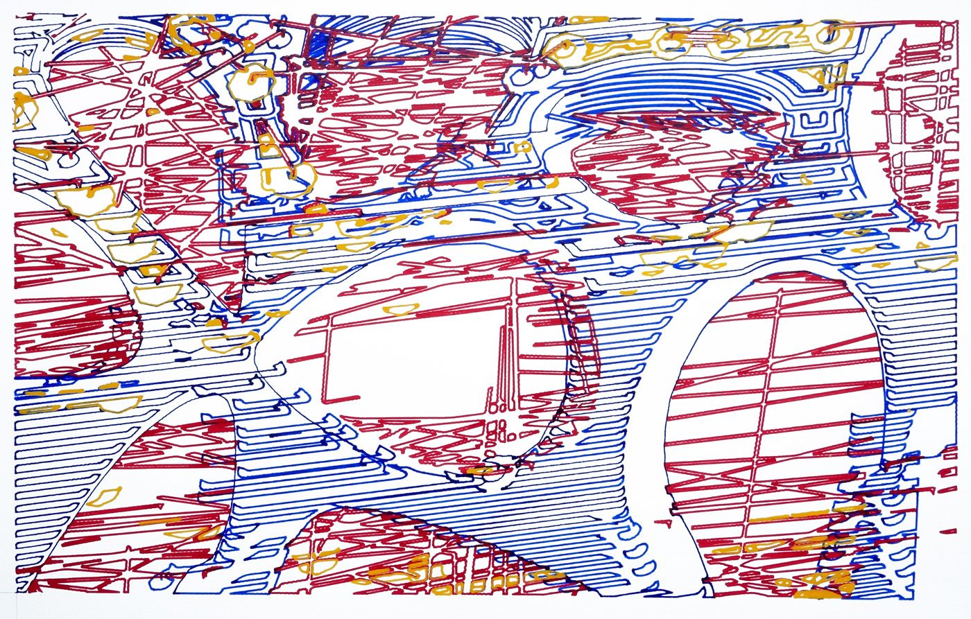 Een tijdje geleden kwam ik terecht op de site van Mike Lyon en zag ik beelden van een inktpen die was bevestigd aan een CNC freesmachine. Dat is een machine waarmee je computergestuurd vormen uit plaatmateriaal kunt frezen. De frees volgt coördinaten in X en Y richting en heft omhoog (Z richting) om de frees in en uit het hout te bewegen.