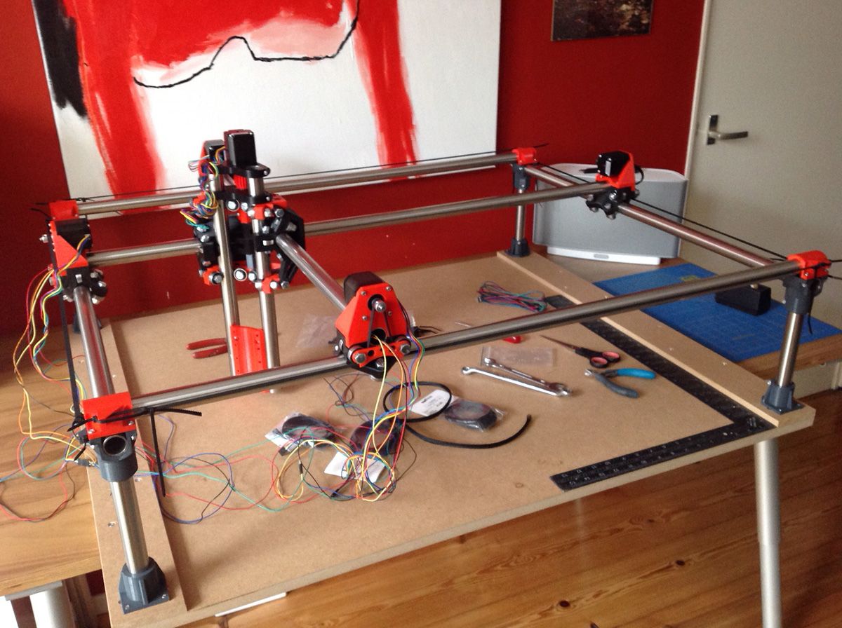 Er zijn tal van interessante experimenten uit te voeren met deze techniek door in plaats van de frees een pen of kwast te gebruiken zodat het als het ware een plotter wordt. Ik weet dat er tegenwoordig fraaie inkjetprinters bestaan maar die zijn te klein van formaat (groot is onbetaalbaar) en te weinig schilderachtig. En een CNC freesmachine had ik al gebouwd met behulp van Ryan Zellars en zijn site V1 Engineering. Daarmee ging ik aan de slag.